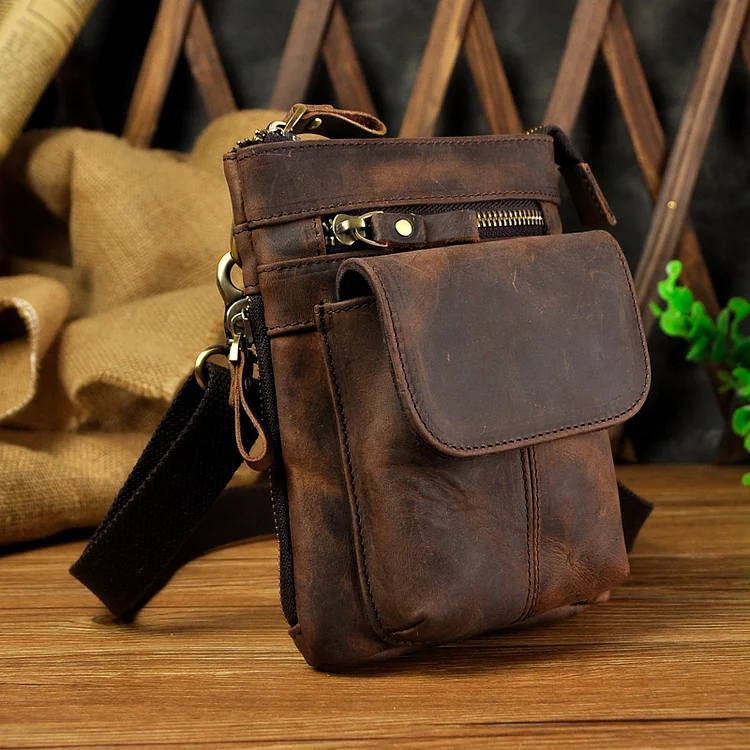 PICKUR MIND Casual Leather Retro Wear Belt Multifunctional Shoulder Bag