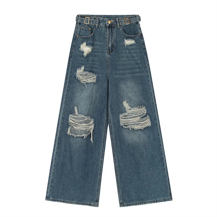 PICKUR MIND Fashion Wash Hole Wide-leg Jeans Men