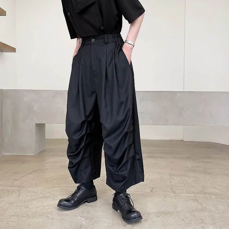 PICKUR MIND High Street Trendy Dark Yamamoto Pleated Cropped Stage Wear Casual Niche Pants