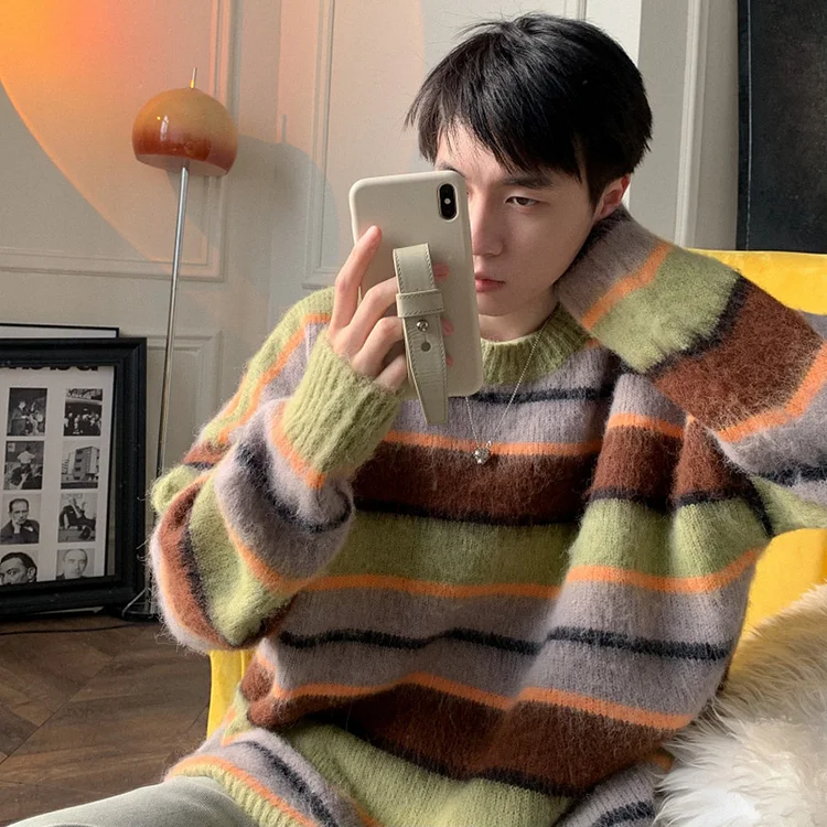 PICKUR MIND Knitwear Slouchy Round Neck Pullover Linen Coat Men