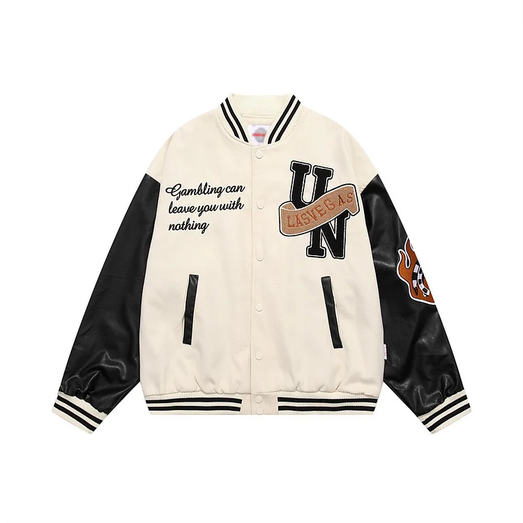 PICKUR MIND Men's Baseball Jacket Color Blocking Embroidered Coat