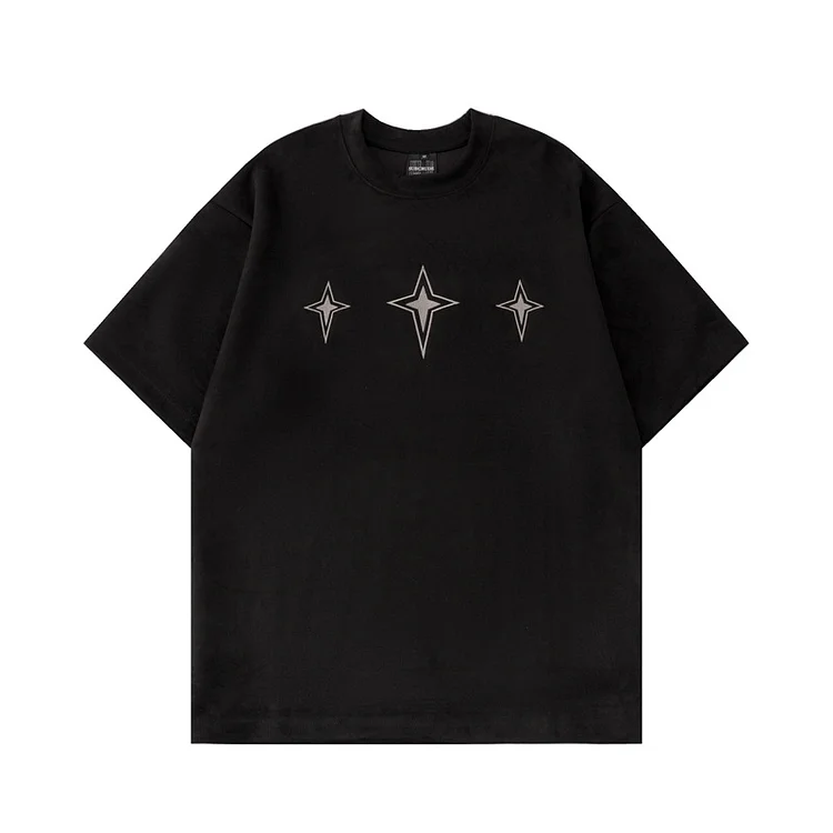 PICKUR MIND New Simple Suede Asterism Printed Loose Round Neck Short Sleeve T-shirt For Men
