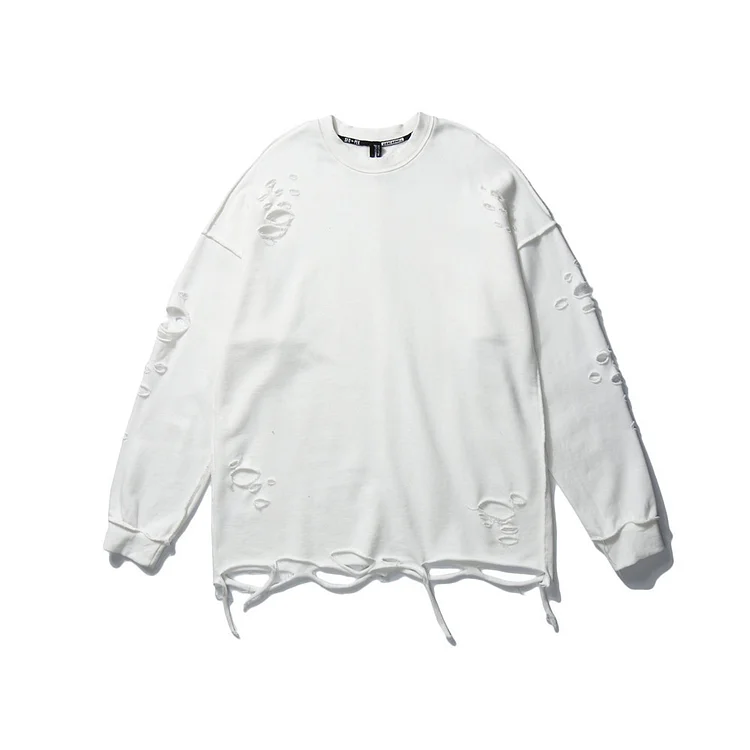 PICKUR MIND Solid Color Simple Ripped Sweater Long Sleeve