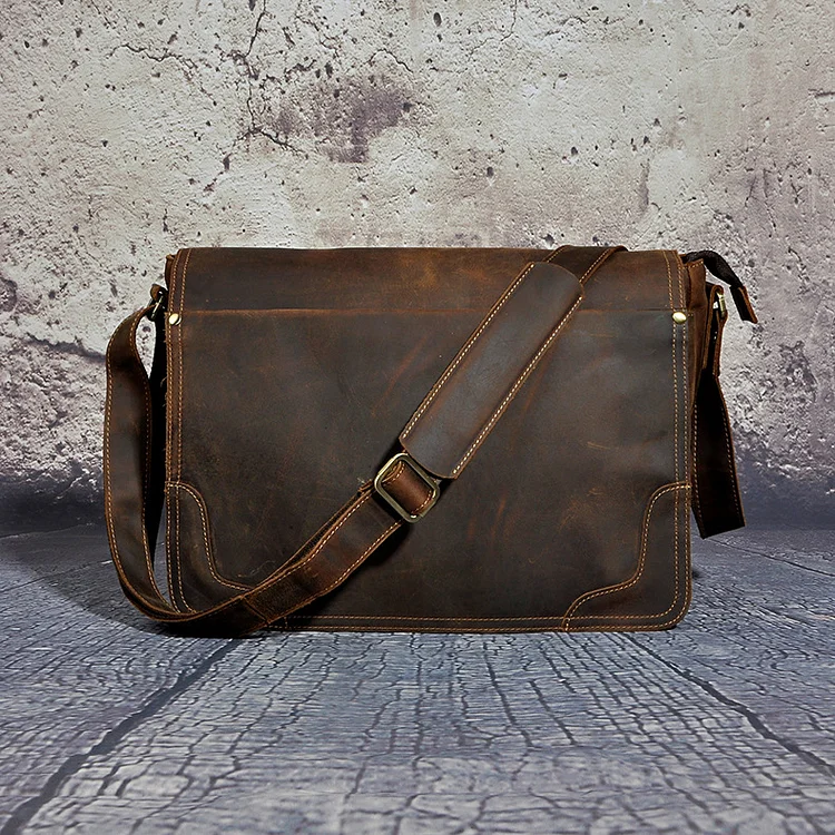 PICKUR MIND The First Layer Of Crazy Horse Leather Cowhide Men's 14-inch Computer One-shoulder Diagonal Bag