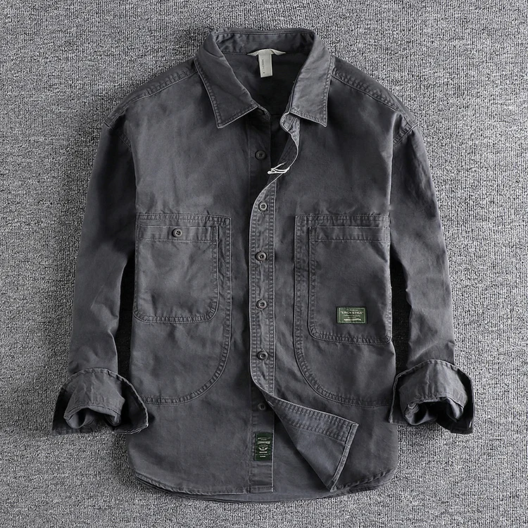 PICKUR MIND Tough Guy Style Heavyweight Washed Old Work Shirt Men's American Cargo Styles Daily Casual Versatile Long Sleeve Shirt Jacket